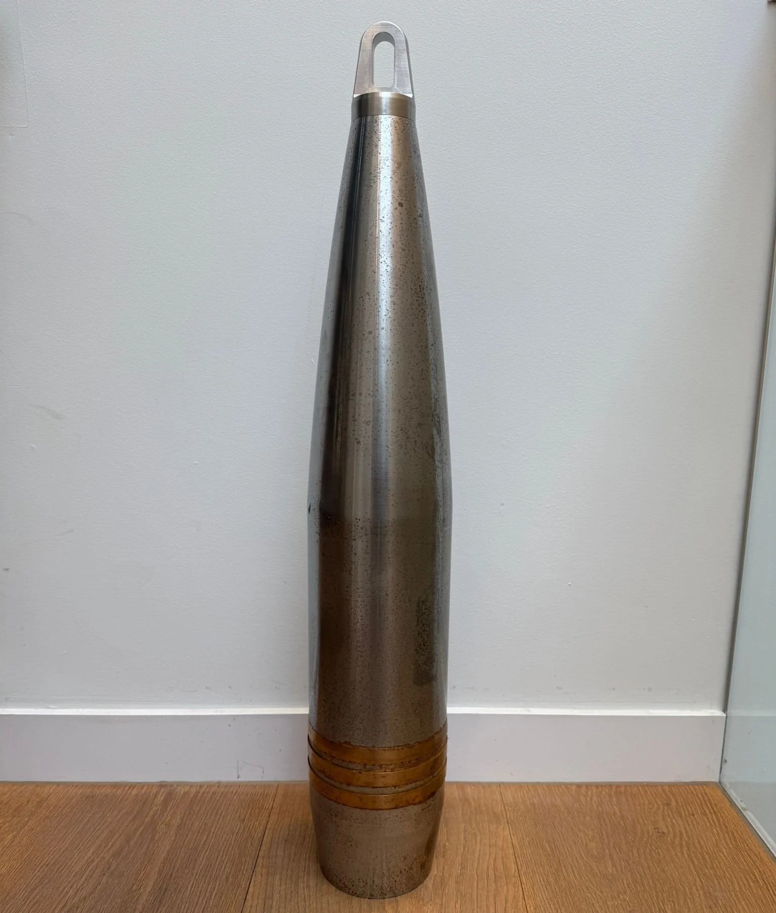 Our shell is made of EN19 (AISI 4140) steel in accordance with the JMBOU and is optimised for high fragmentation and blast effects. The body of the projectile consists of a hollow steel shell containing ‘Comp B’ RDX/TNT (60:40) high explosives.
